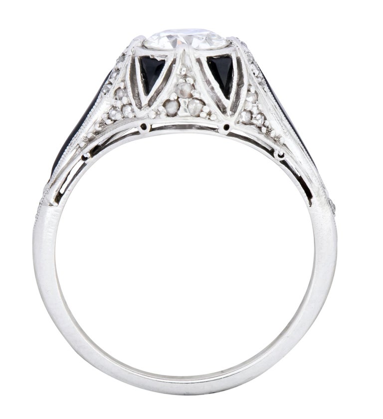 Art deco onyx and.98 carat old european diamond engagement ring $16,600.